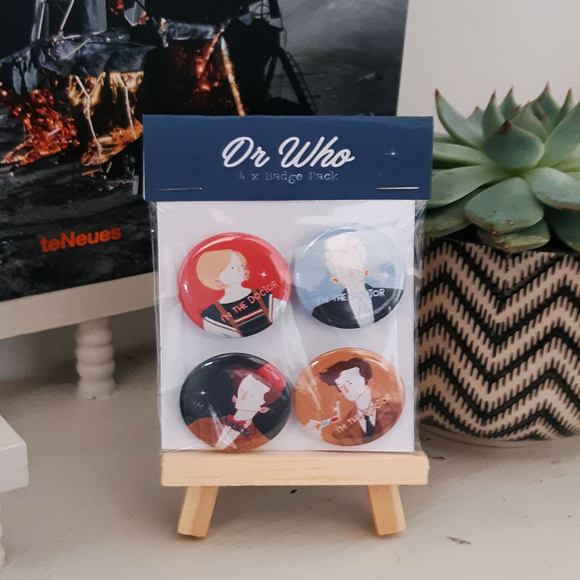 4x 32mm/1.26" "I'm the Doctor!" Doctor Who Themed Badge/Button Pack