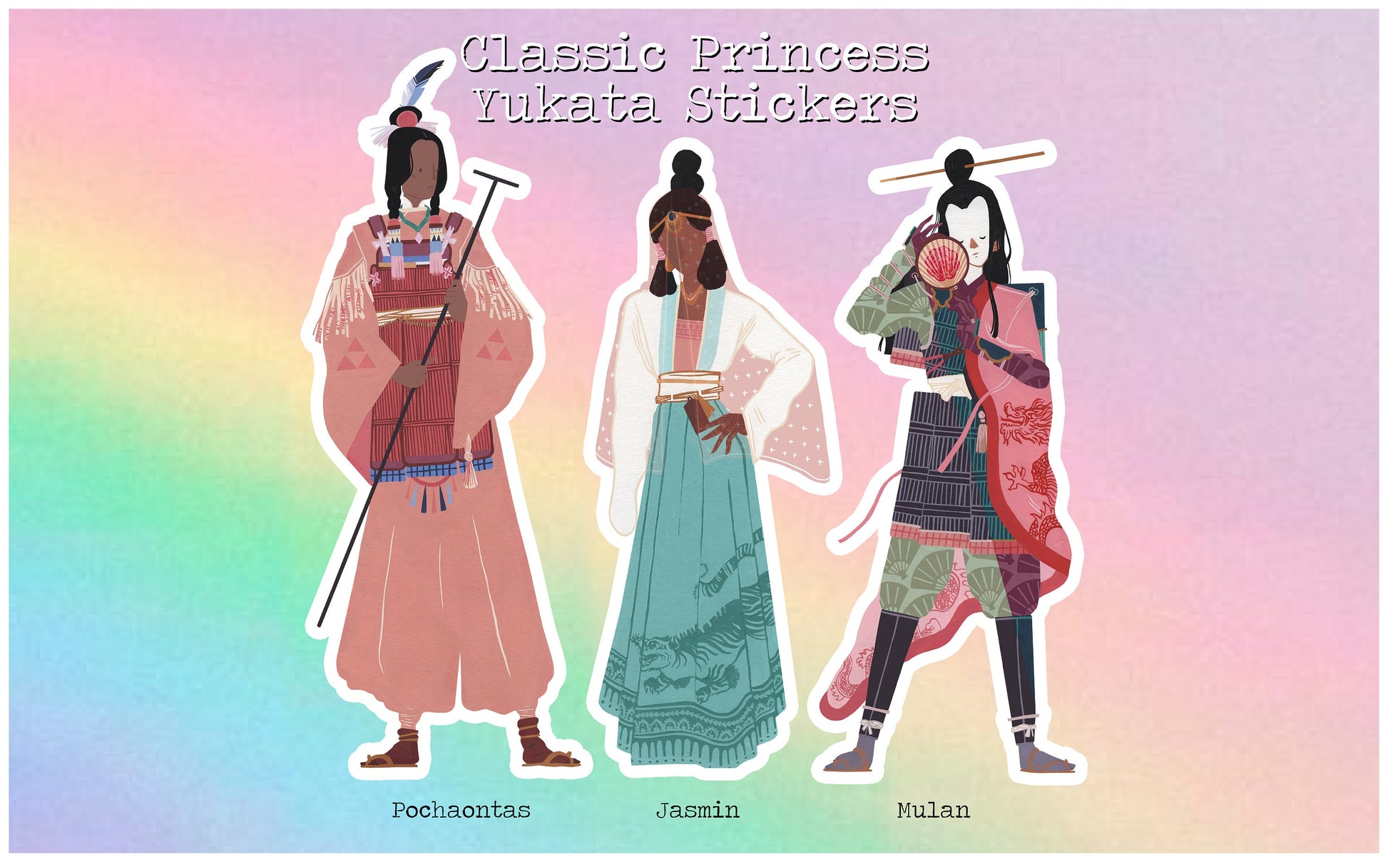 Matte “Yukata” Series Stickers - featuring characters from the Disney Princess franchise.