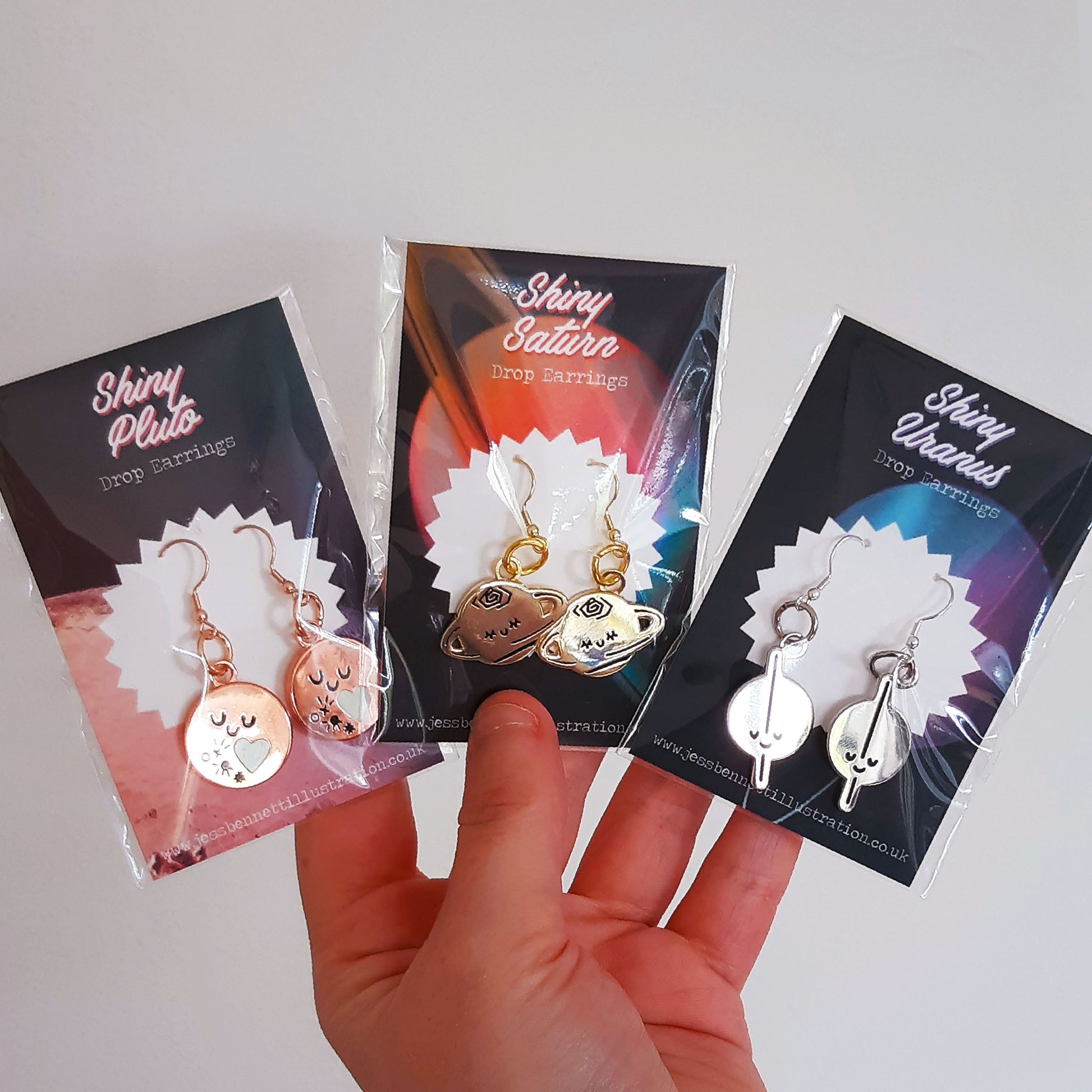 Cute little dangle/drop earrings featuring shiny (still a planet) Pluto.